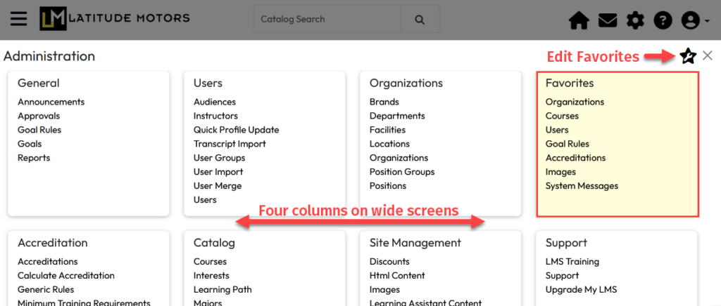 Administrator Menu Favorites: