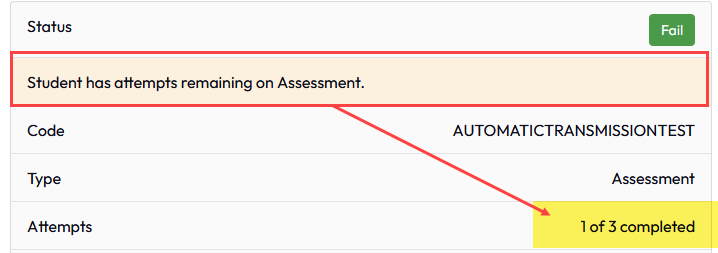 Course Slide-in: Updated the Assessments slide-in to include the number of test attempts remaining in a format “X of Y Completed”. Note: if an assessment’s limit is modified to be lower than the number of attempts already completed, the number of attempts won’t change and will represent as higher than the number now allowed, (e.g. 4/5 changed to 2 attempts would display 4/2 completed)