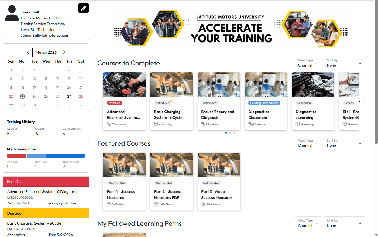 These are also visible to Managers on My Team, making it easy to track progress on team and individual learning efforts. Accreditation goals can also be set to automatically enroll student in the relevant courses to make managing learning programs for the portal administrators easier.