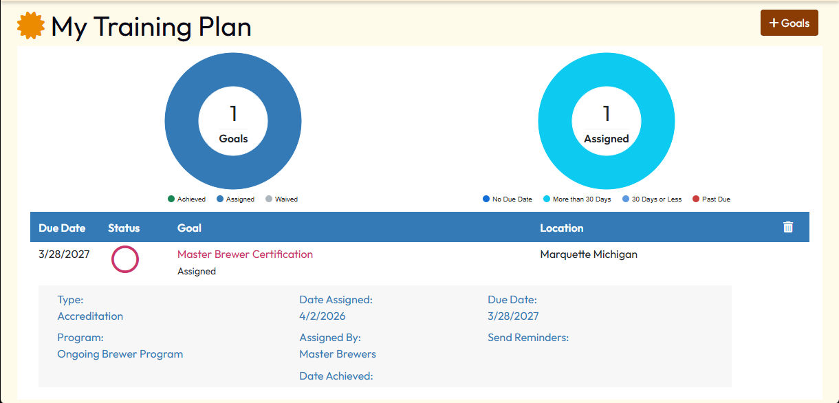 The view below is what a learner would see from their My Training Plan page, which lists all their goals.