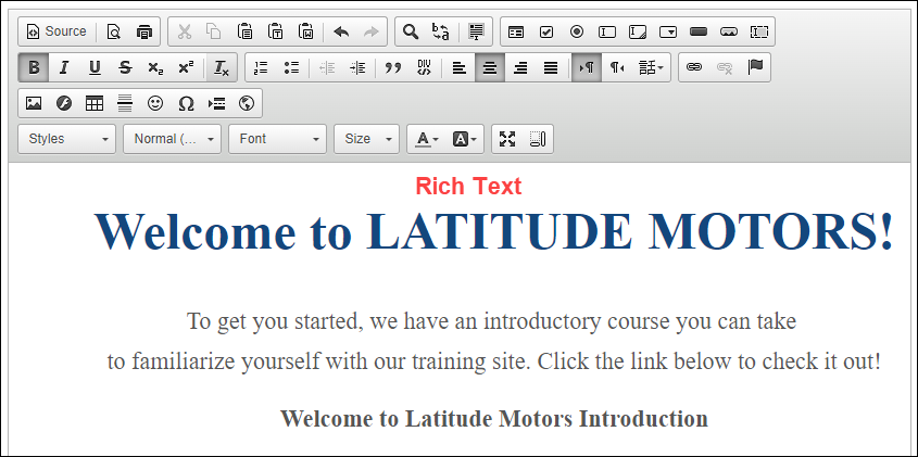 In the previous image, the code entered would display in the Rich Text Editor as shown below.