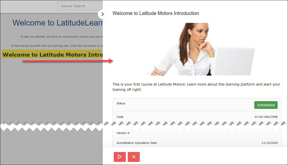 Now when the relevant users access the page, a Course link will display the Course slide-in page. An Accreditation link will display the appropriate Accreditation slide-in page.