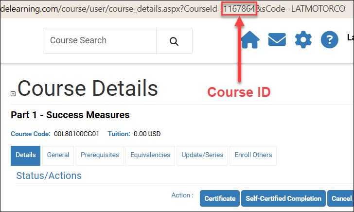Plug in the appropriate CourseID or CertificationID you copied from the URL in Step 3 above.