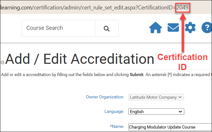For an Accreditation, on the Accreditation Details page, copy and/or make note of the Certification ID number from the URL as shown below. It will be unique to the accreditation displayed.Example:  …/cert_rule_set_detail.aspx?CertificationID=2058…