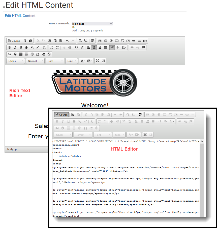 Note: When editing an HTML page, the LMS does not store versions for restoration to earlier revisions. We recommend that prior to customization, you copy and save the original HTML Source Code to Notepad or other text editor so that you can revert to the original if necessary. You can also copy the existing page, rename it, then make your edits in the copy so that the original exists for restoration if necessary.