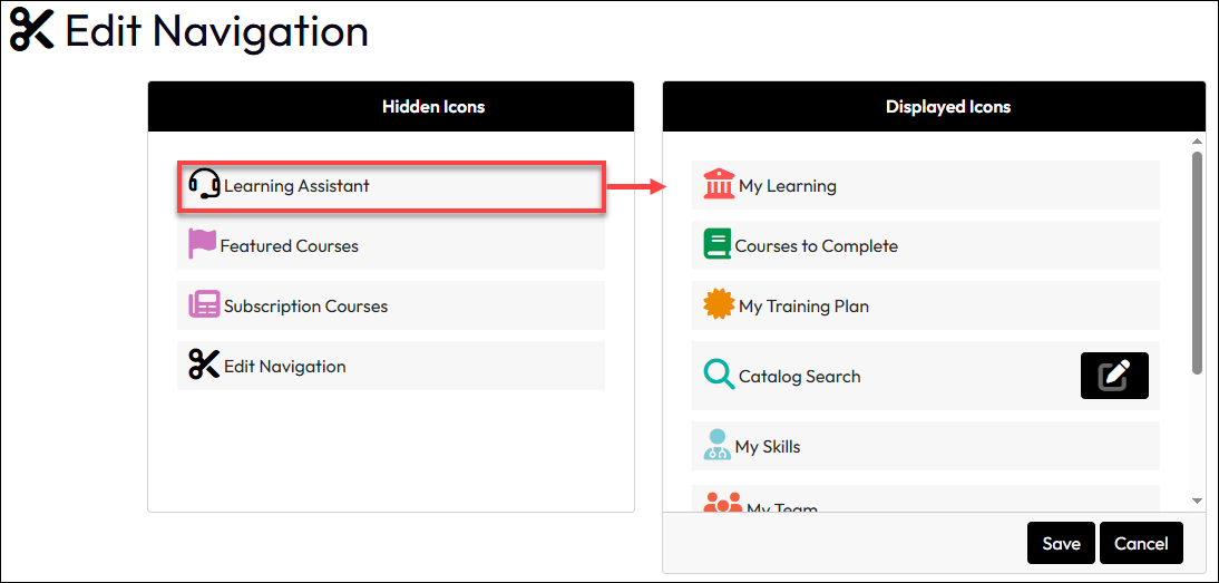 Displaying the Learning Assistant to your learners is simple, once you have some content indexed to give them results to common questions or information queries they might pose to the chatbot. Remember, while setting up your indexed content, you can use the Test Chat button on the Learning Assistant Content page to access the hidden Learning Assistant page your learners would use. This allows you to test searches and questions they might, ensuring that they have a good experience when you do enable the tool on your Navigation menu.