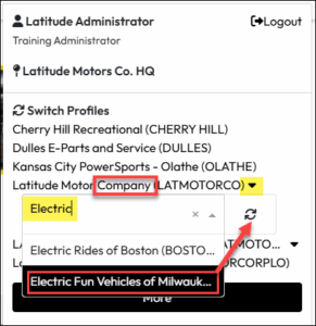 • If you don’t have other location profiles, use the Company level lookup. Start typing the name of a location under the relevant Business Unit. Select it from the list, then click the circular arrow icon to apply it.