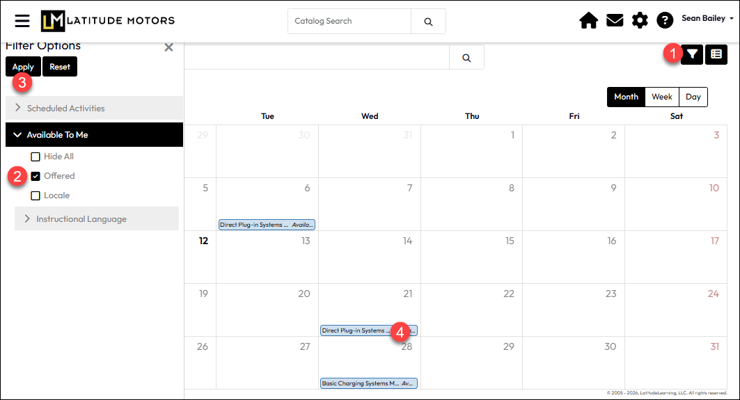If your portal administrator has made the Training Calendar available, your default view will display only offerings you are already enrolled in and other dated-driven events related to your training. To view offerings you are not already enrolled in, you will need to filter the view.