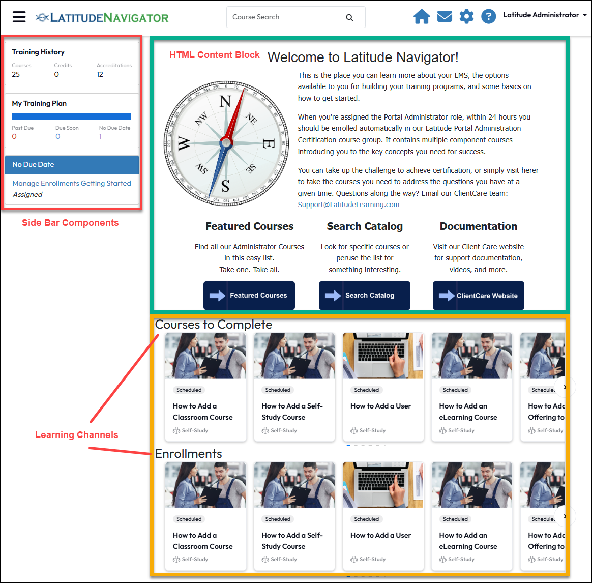 My Learning is a dashboard view of your LMS profile, activity summaries, and personalized learning channels. You have easy access to your learning activities and options and can take action quickly using standard course action buttons like Launch or Enroll. Click on channel headers or linked names to see full details relevant to that channel. Your view is managed by your portal administrator so some items mentioned may not be enabled for your portal.